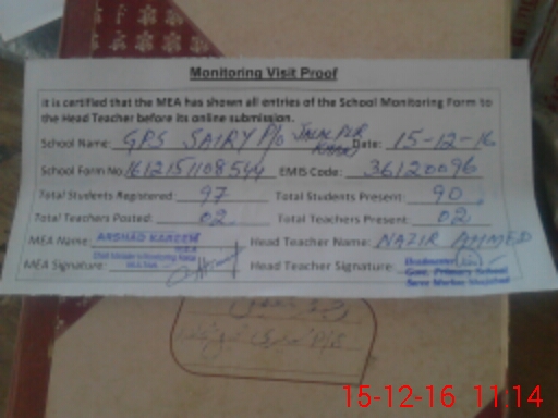 | EMIS Code: 36120096 | Name of School: GPS SAIRY P/O JALAL PUR KHAKHI | |||