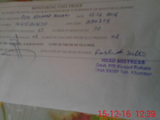 | EMIS Code: 31310378 | Name of School: GGPS KEVARD RUKANI CHAK NO. 99 / N.P | |||