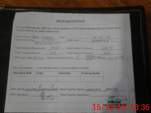 | Attendance Register | Head Teacher | MEA with School | Visit Proof |