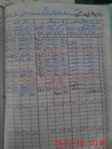 | CNIC | Full Name | Designation | R/C | Absence During Last Calender Month |