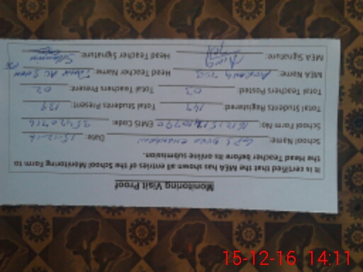 | Certified that this School was Inspected by the Undersigned MEA/DMO Today and the Information Stated Above is as Per Record. | |||||