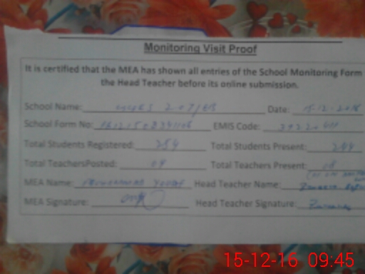 | Certified that this School was Inspected by the Undersigned MEA/DMO Today and the Information Stated Above is as Per Record. | |||||
