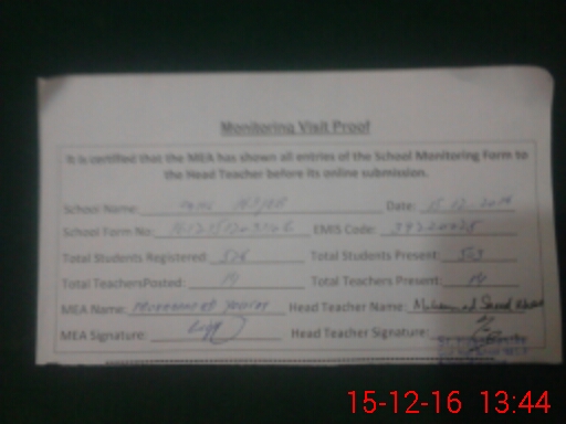 | Certified that this School was Inspected by the Undersigned MEA/DMO Today and the Information Stated Above is as Per Record. | |||||