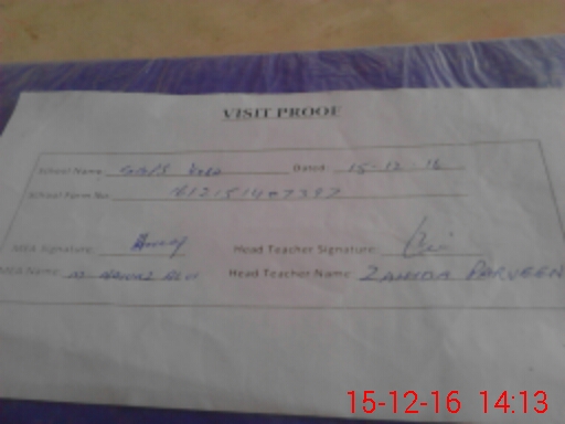 | Attendance Register | Head Teacher | MEA with School | Visit Proof |