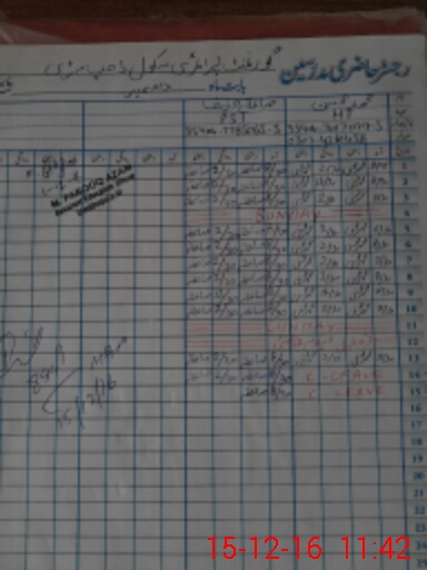 | CNIC | Full Name | Designation | R/C | Absence During Last Calender Month |