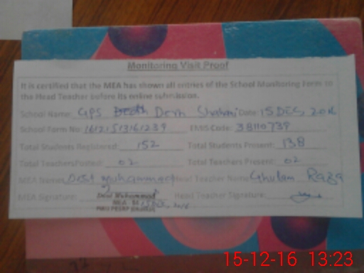 | EMIS Code: 38110739 | Name of School: GPS DERH SHAHANI | |||