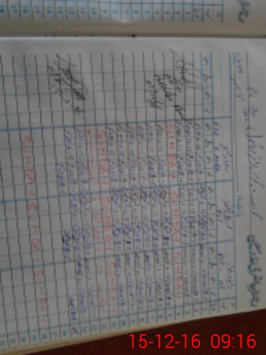 | CNIC | Full Name | Designation | R/C | Absence During Last Calender Month |