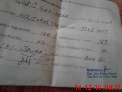 | EMIS Code: 33251007 | Name of School: GGPS GHAZI ABAD | |||