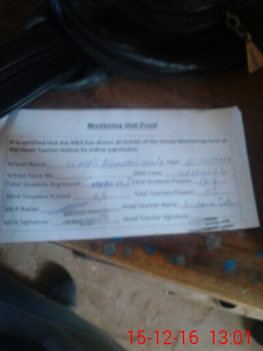 | Attendance Register | Head Teacher | MEA with School | Visit Proof |