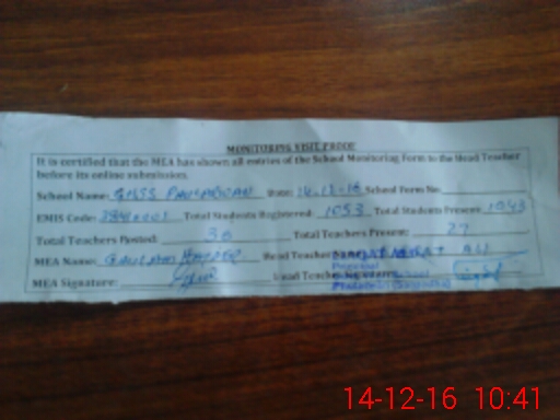 | Certified that this School was Inspected by the Undersigned MEA/DMO Today and the Information Stated Above is as Per Record. | |||||