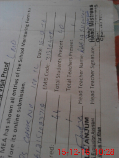 | Certified that this School was Inspected by the Undersigned MEA/DMO Today and the Information Stated Above is as Per Record. | |||||