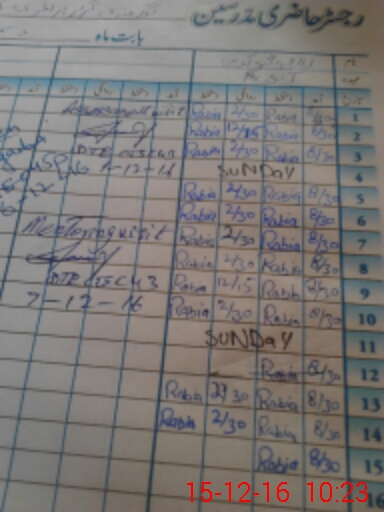 | CNIC | Full Name | Designation | R/C | Absence During Last Calender Month |