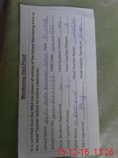 | Certified that this School was Inspected by the Undersigned MEA/DMO Today and the Information Stated Above is as Per Record. | |||||