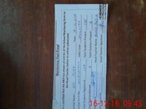 | Attendance Register | Head Teacher | MEA with School | Visit Proof |
