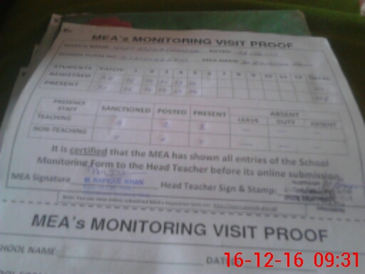 | Attendance Register | Head Teacher | MEA with School | Visit Proof |