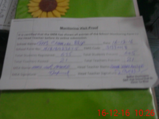 | Certified that this School was Inspected by the Undersigned MEA/DMO Today and the Information Stated Above is as Per Record. | |||||