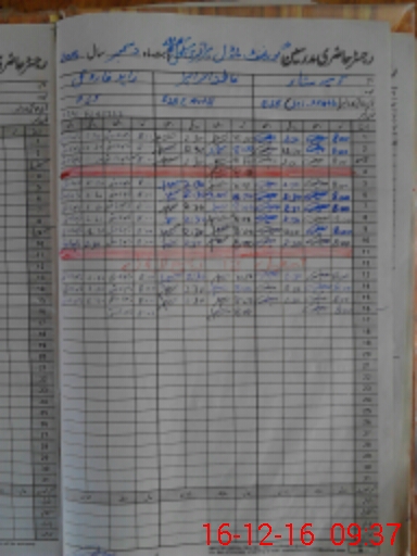| CNIC | Full Name | Designation | R/C | Absence During Last Calender Month |