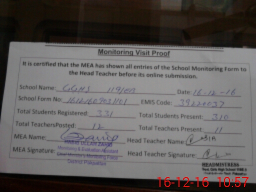 | EMIS Code: 39220037 | Name of School: GGHS 119 EB | |||