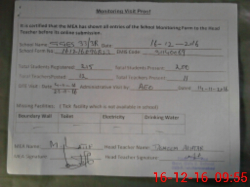 | Certified that this School was Inspected by the Undersigned MEA/DMO Today and the Information Stated Above is as Per Record. | |||||