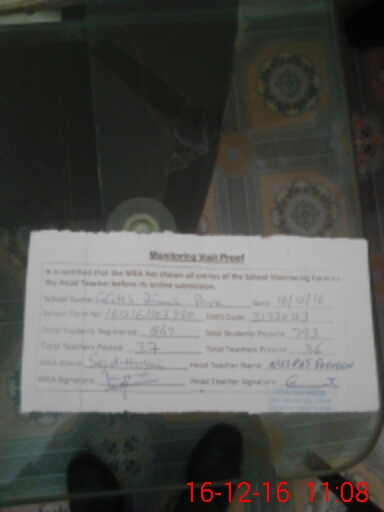 | Certified that this School was Inspected by the Undersigned MEA/DMO Today and the Information Stated Above is as Per Record. | |||||