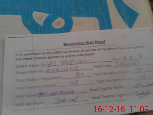 | Attendance Register | Head Teacher | MEA with School | Visit Proof |