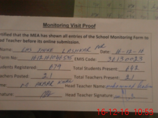 | EMIS Code: 36130023 | Name of School: GHS JHOKE LASHKAR PUR MULTAN | |||