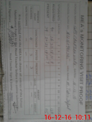 | Monitoring Date: 16-12-2016 | Start Time: 16-12-2016 09:40 AM | End Time: 16-12-2016 10:12 AM | Name of MEA: M.Ta**** Iq**** (S**** | |