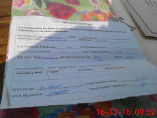 | Attendance Register | Head Teacher | MEA with School | Visit Proof |