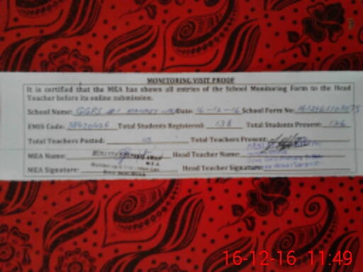 | Certified that this School was Inspected by the Undersigned MEA/DMO Today and the Information Stated Above is as Per Record. | |||||