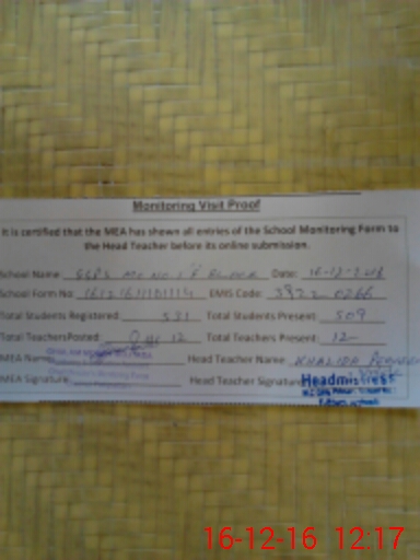 | Certified that this School was Inspected by the Undersigned MEA/DMO Today and the Information Stated Above is as Per Record. | |||||