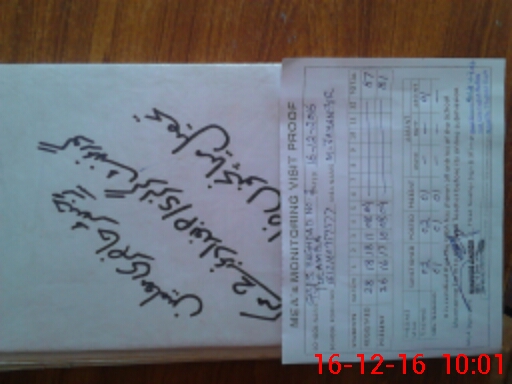 | Monitoring Date: 16-12-2016 | Start Time: 16-12-2016 08:40 AM | End Time: 16-12-2016 10:06 AM | Name of MEA: Mu**** Ja**** | |