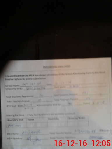 | Certified that this School was Inspected by the Undersigned MEA/DMO Today and the Information Stated Above is as Per Record. | |||||