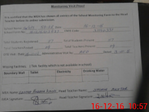 | Certified that this School was Inspected by the Undersigned MEA/DMO Today and the Information Stated Above is as Per Record. | |||||