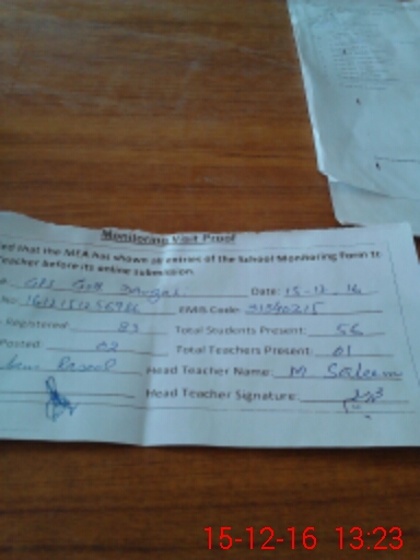 | Attendance Register | Head Teacher | MEA with School | Visit Proof |