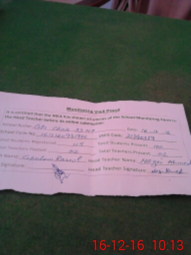 | Monitoring Date: 16-12-2016 | Start Time: 16-12-2016 09:41 AM | End Time: 16-12-2016 10:16 AM | Name of MEA: Gh**** Ra**** | |