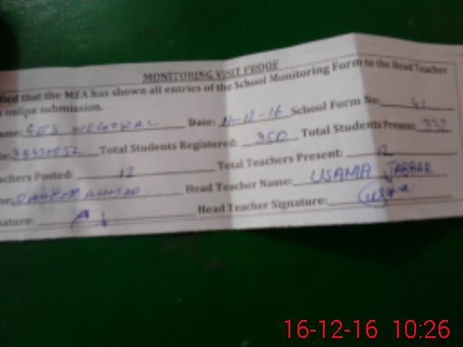 | Certified that this School was Inspected by the Undersigned MEA/DMO Today and the Information Stated Above is as Per Record. | |||||