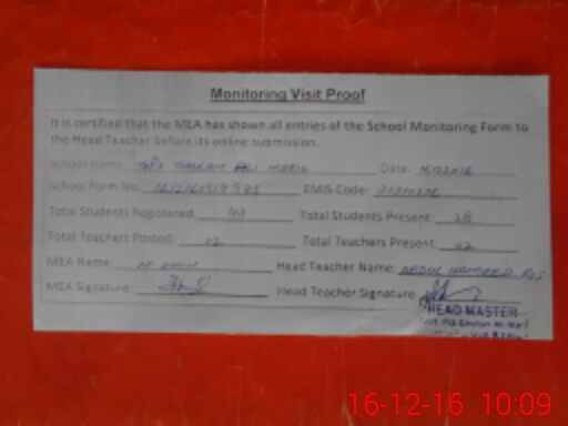 | EMIS Code: 31310276 | Name of School: GPS GHULAM ALI MARIL | |||
