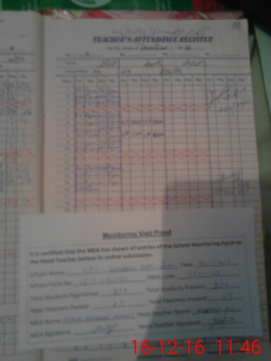 | Attendance Register | Head Teacher | MEA with School | Visit Proof |