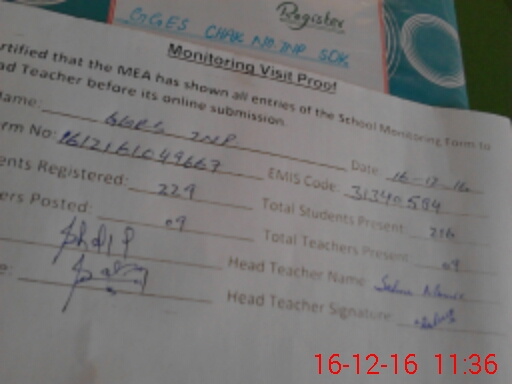 | Attendance Register | Head Teacher | MEA with School | Visit Proof |