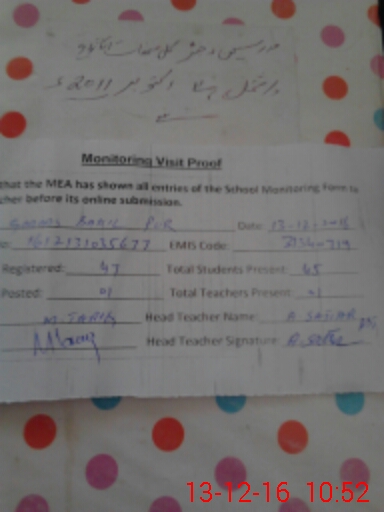 | Certified that this School was Inspected by the Undersigned MEA/DMO Today and the Information Stated Above is as Per Record. | |||||