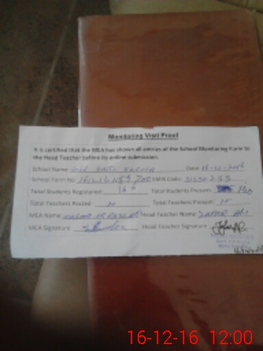 | Attendance Register | Head Teacher | MEA with School | Visit Proof |