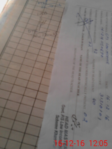| Monitoring Date: 16-12-2016 | Start Time: 16-12-2016 11:50 AM | End Time: 16-12-2016 12:09 PM | Name of MEA: Za**** Hu**** | |