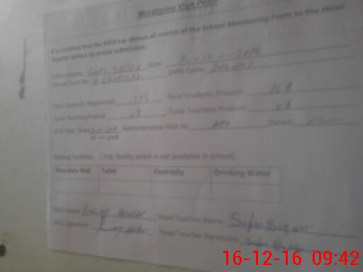 | Certified that this School was Inspected by the Undersigned MEA/DMO Today and the Information Stated Above is as Per Record. | |||||