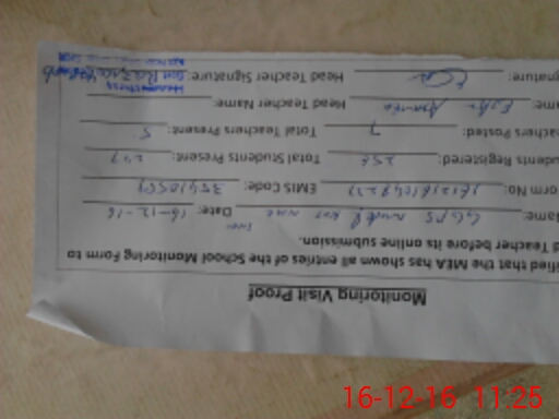 | Attendance Register | Head Teacher | MEA with School | Visit Proof |