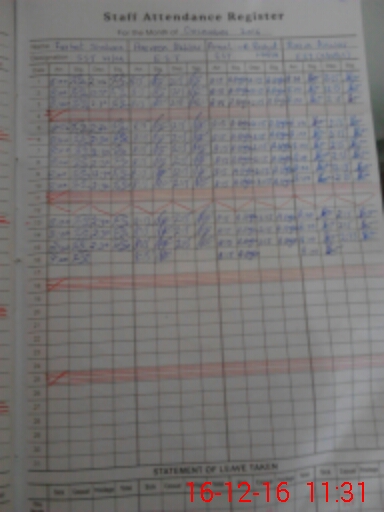 | CNIC | Full Name | Designation | R/C | Absence During Last Calender Month |