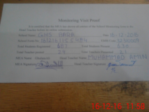 | EMIS Code: 32310009 | Name of School: GHS BARA | |||