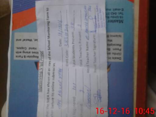 | Attendance Register | Head Teacher | MEA with School | Visit Proof |
