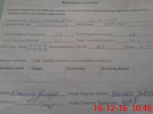 | Certified that this School was Inspected by the Undersigned MEA/DMO Today and the Information Stated Above is as Per Record. | |||||