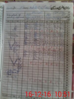 | CNIC | Full Name | Designation | R/C | Absence During Last Calender Month |