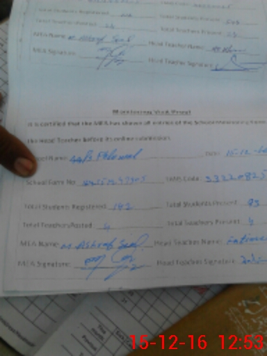 | Certified that this School was Inspected by the Undersigned MEA/DMO Today and the Information Stated Above is as Per Record. | |||||